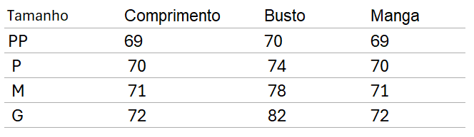 Tabela de Medidas (cm)