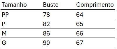 Tabela de medida: