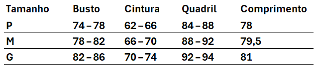 Tabela de medida: