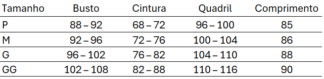 Material: Poliéster com elastano de alta qualidade, com toque macio, leveza e ótimo caimento.